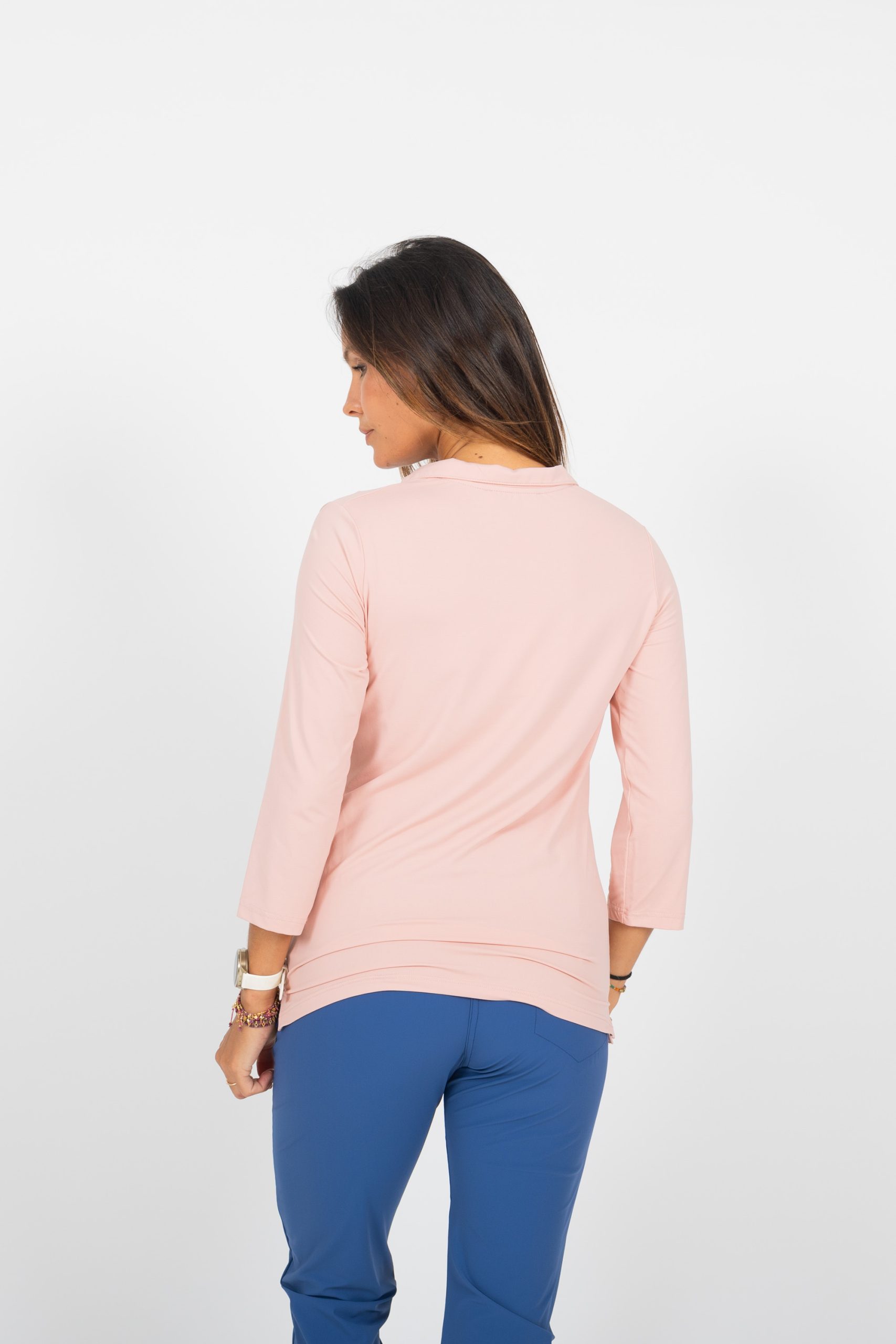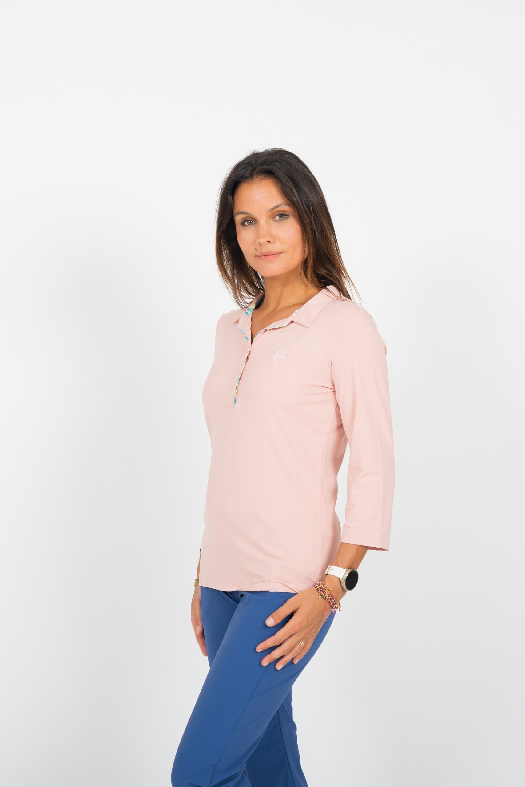 Un polo chic minimaliste au couleur printanière, un choix polyvalent pour rester féminine dans toutes les situations.
