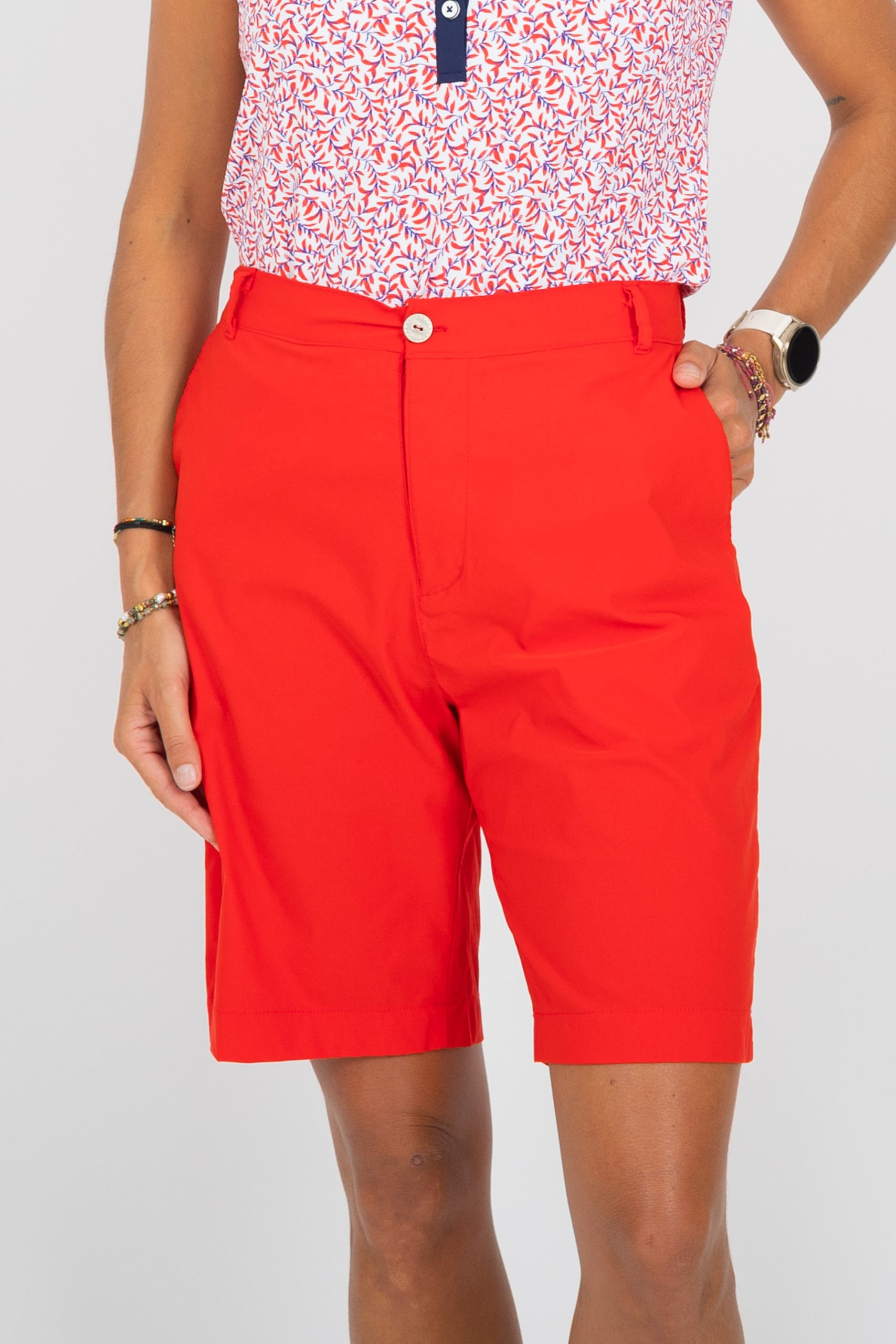Ce bermuda de golf, à la coupe droite, constitue une pièce forte pour votre garde-robe de golfeuse. En effet ce bermuda est le vêtement parfait pour s’imposer sur le parcours les jours d’été.